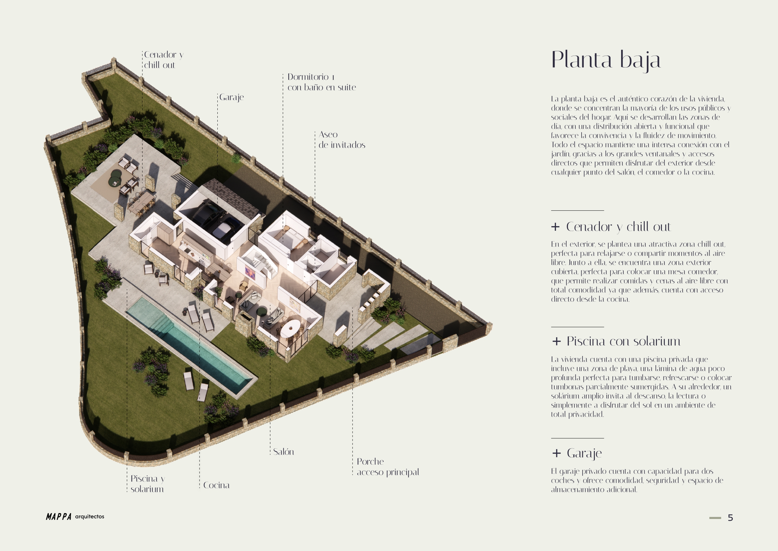 La distribución incluye 4 dormitorios, 3 baños y 2 aseos, además de una sala de juegos y un despacho, perfectos para el teletrabajo o momentos de ocio. La cocina cuenta con tendedero, y el gran salón a doble altura, con chimenea, se convierte en el corazón del hogar, donde crear recuerdos inolvidables. Dos amplios porches invitan a disfrutar del aire libre, mientras que el garaje tiene capacidad para dos coches.
